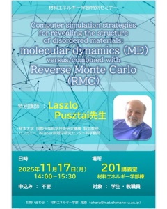 An oral presentation ‘Partial atomic structures of Ga-Ge-S glasses obtained in combination of anomalous x-ray scattering and neutron diffraction’ is carried out at 2025 Spring Meeting of Physical Society of Japan held on line from 18th.