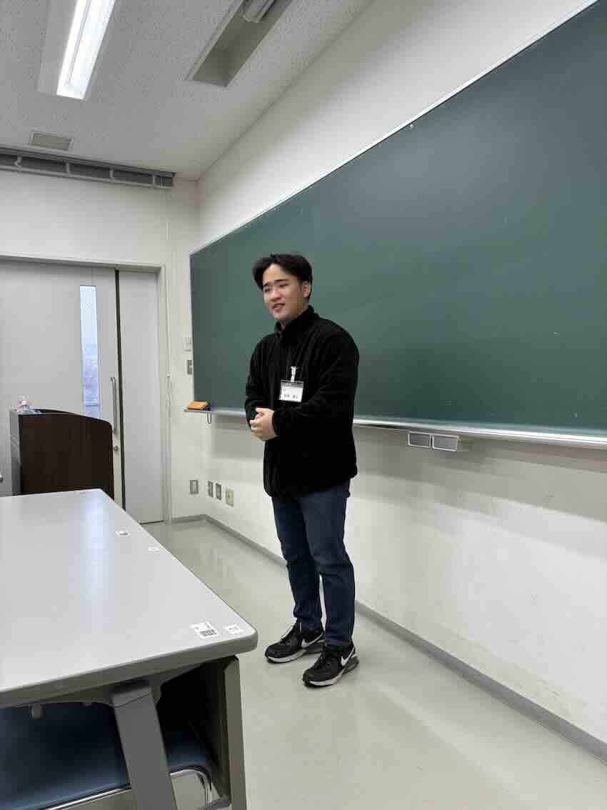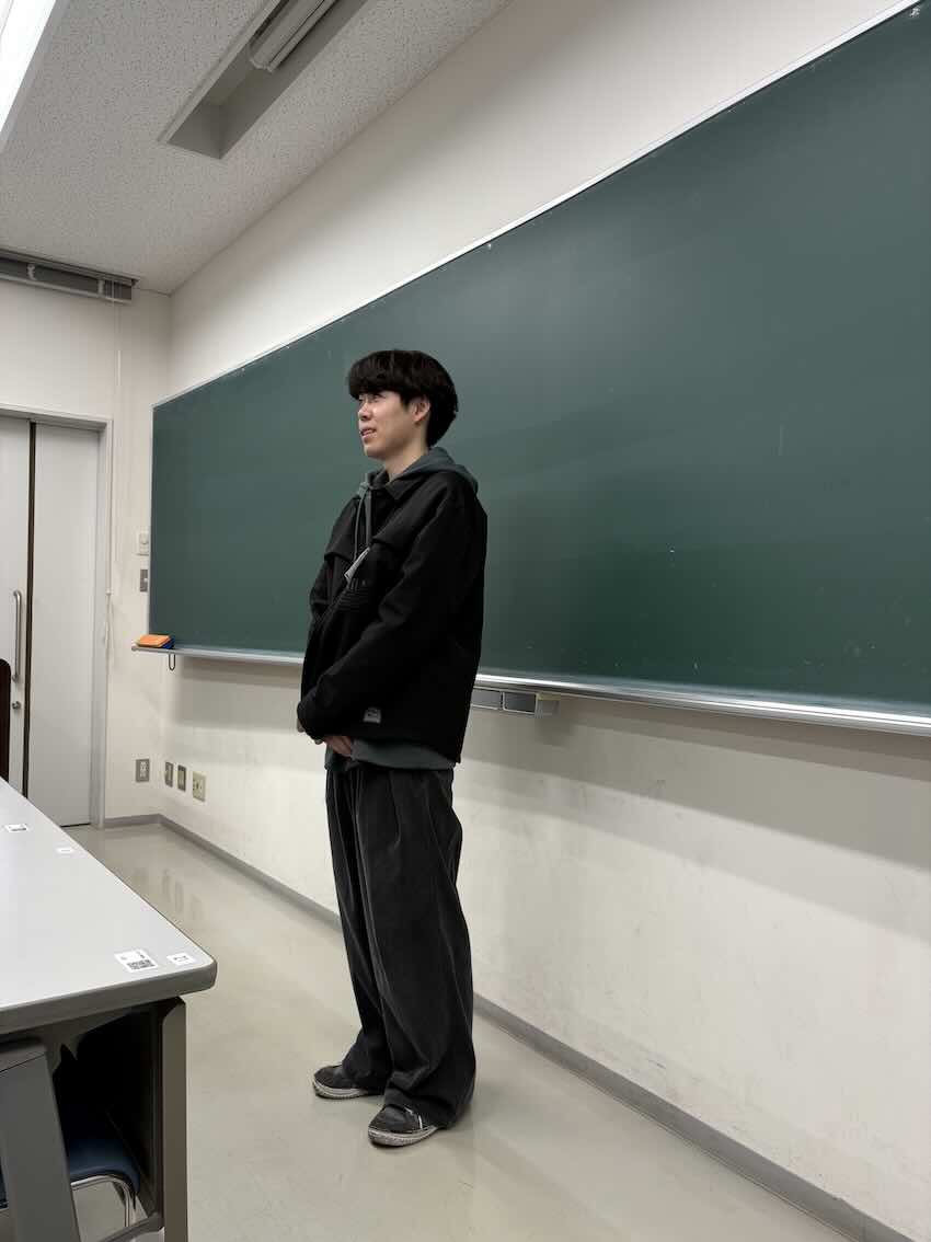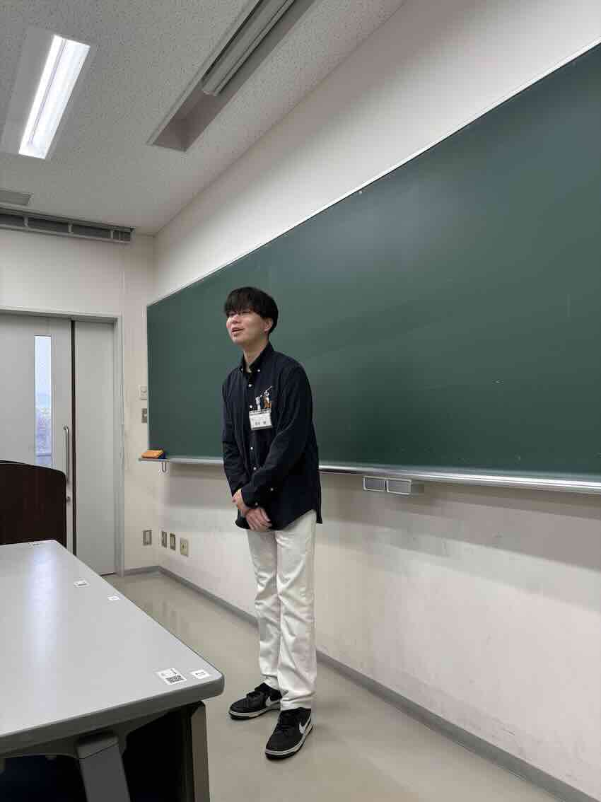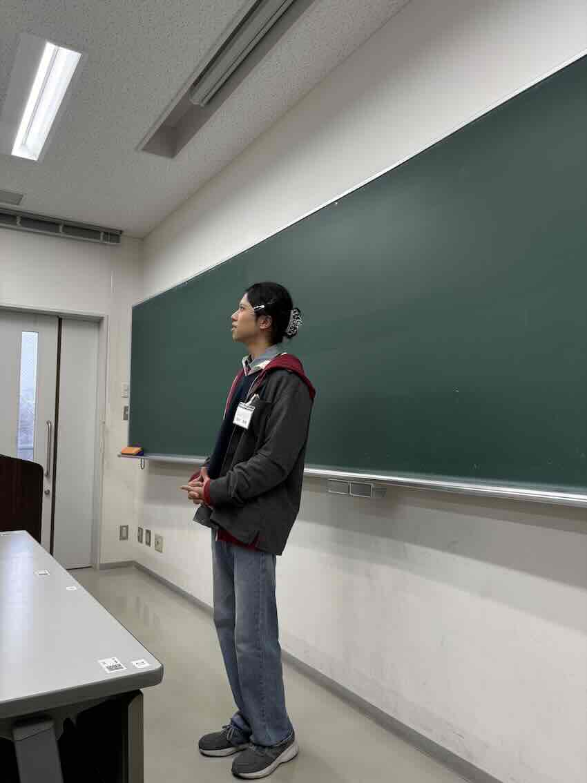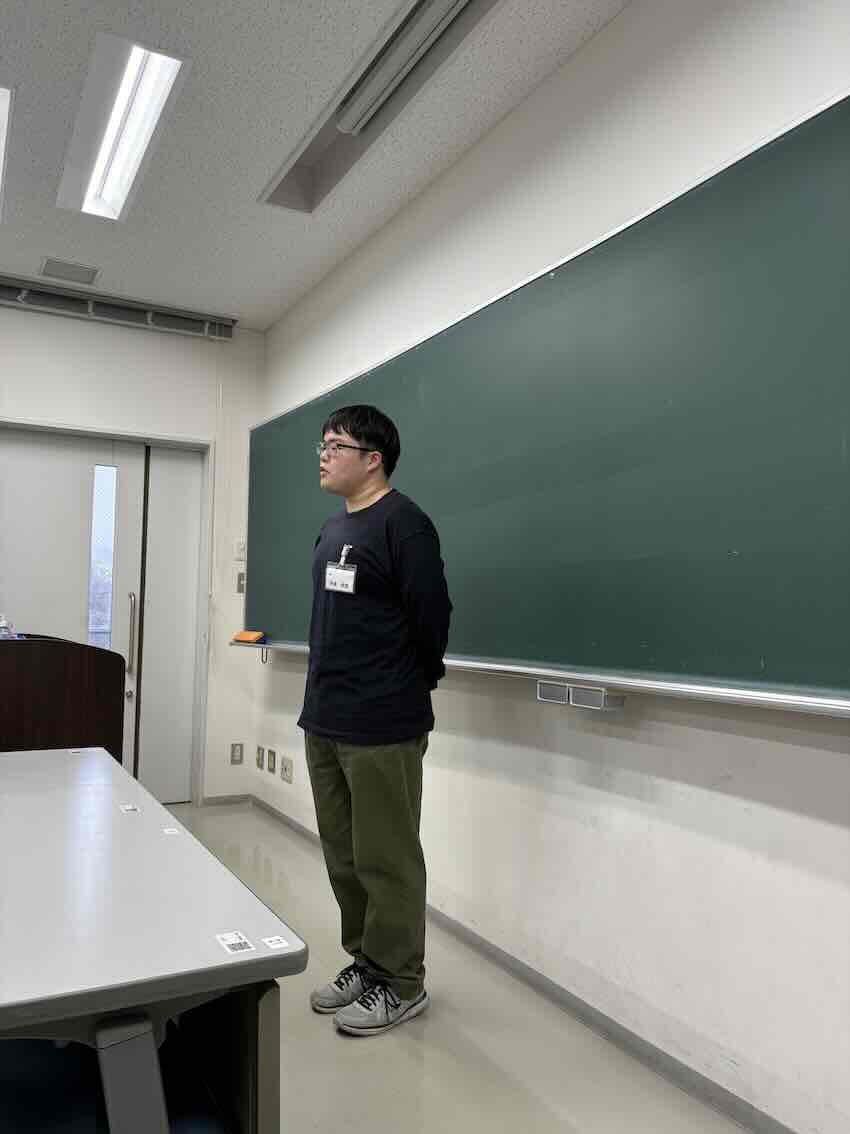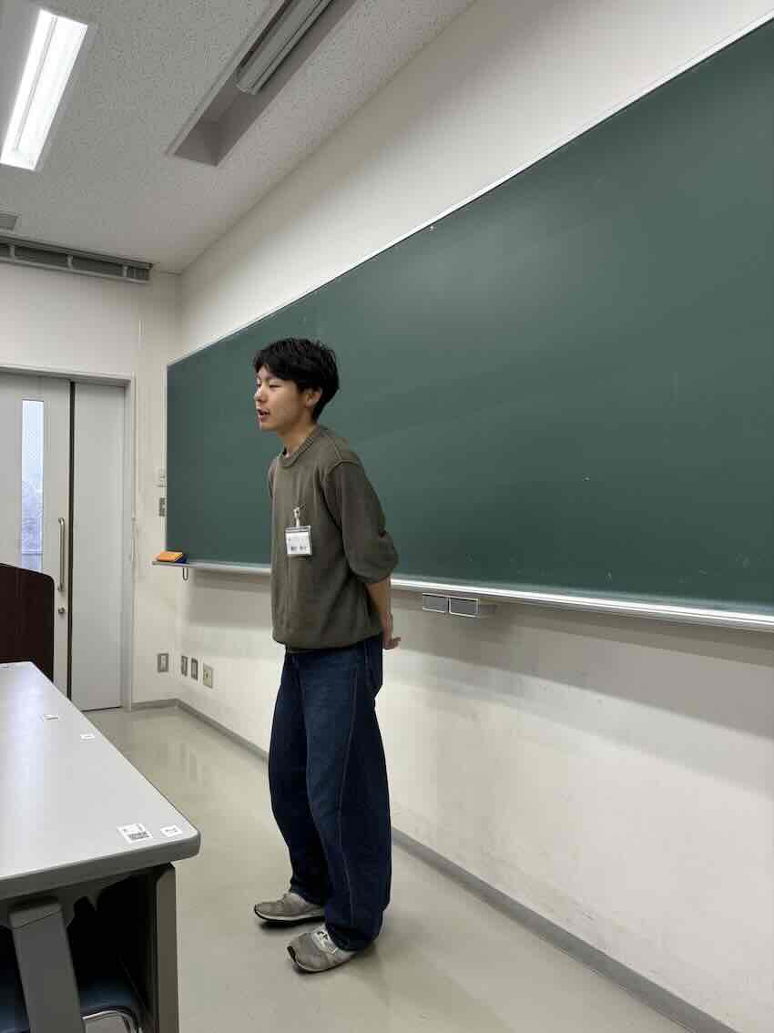 ![]() 修論審査会・卒研発表に向けて 坂本さん(2025年修士)からいただきました おしゃれで美味しいお菓子をありがとう (撮影:審査会前日練習後) |